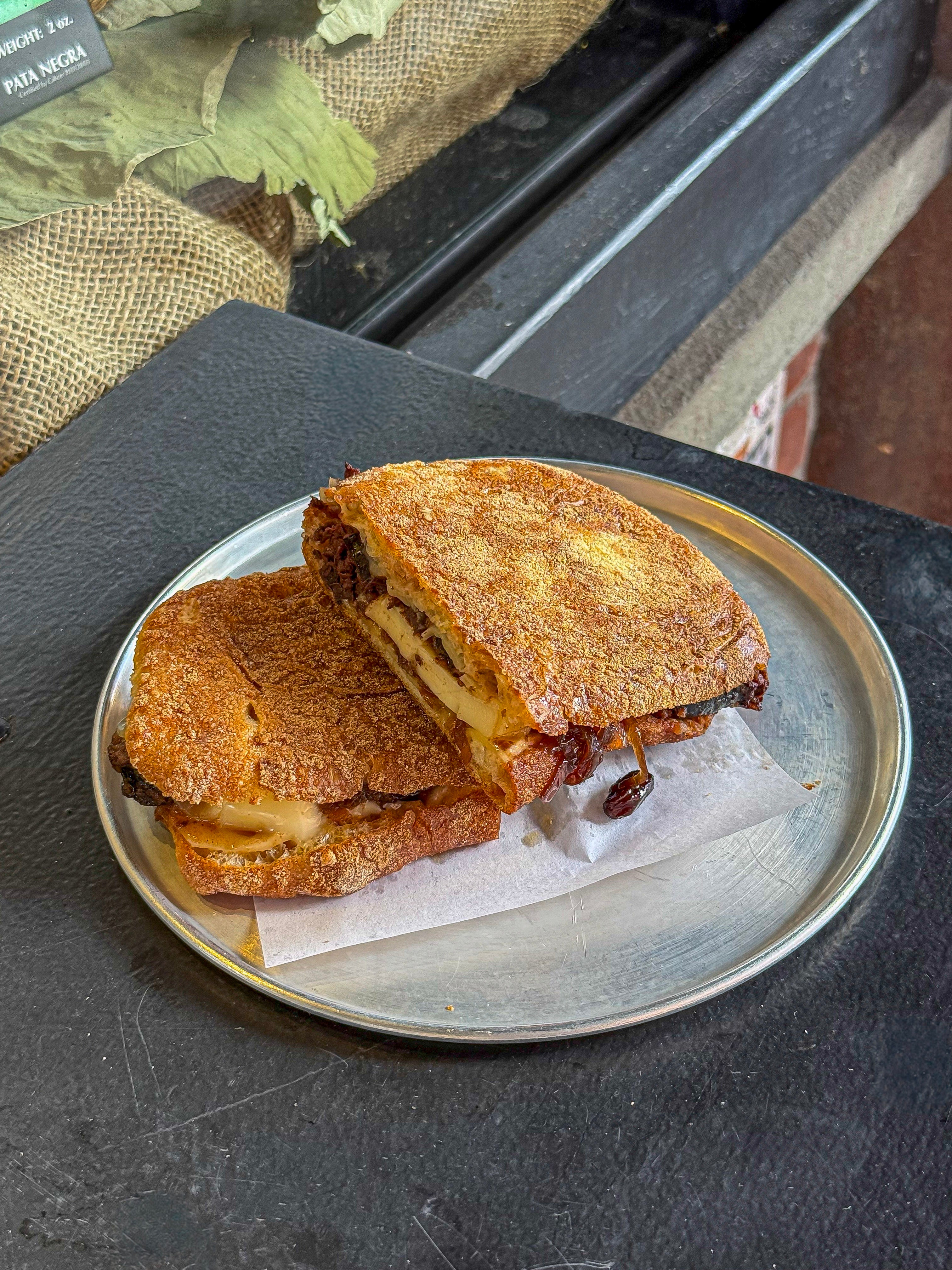 We just added this Grilled Cheese with Mocilla and Onion Sherry Chutney to our cafe menu, and it has instantly turned into a classic. It's a Spanish twist on a comfort classic. This rich and savory grilled cheese layers Despaña Morcilla, buttery Mahón semi-cured cheese, and creamy Tetilla cheese with a sweet-sour Onion & Sherry Chutney. Perfectly melty, perfectly balanced — a tapa turned into the ultimate sandwich.