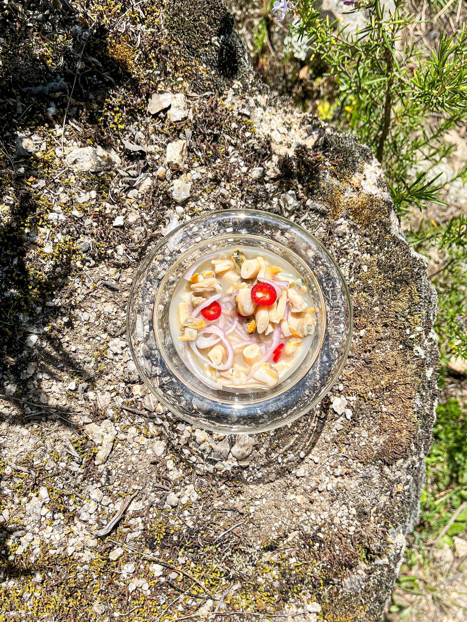 Tinned fish can so easily be incorporated into your outdoor dining experiences. Their non-perishable nature makes them a reliable ingredient for outdoor adventures, ensuring freshness without the need for refrigeration. Whether you're crafting vibrant salads, hearty sandwiches, comforting pasta dishes, or in this case a ceviche, the versatility of tinned fish, or razor clams for this recipe, allows for creative culinary expressions. From beachside picnics to fireside cookouts, these Spanish delicacies add a touch of elegance and flavor to any outdoor dining experience. With minimal effort required for preparation, you can unleash loads of gourmet flavors and whip up delightful meals.
