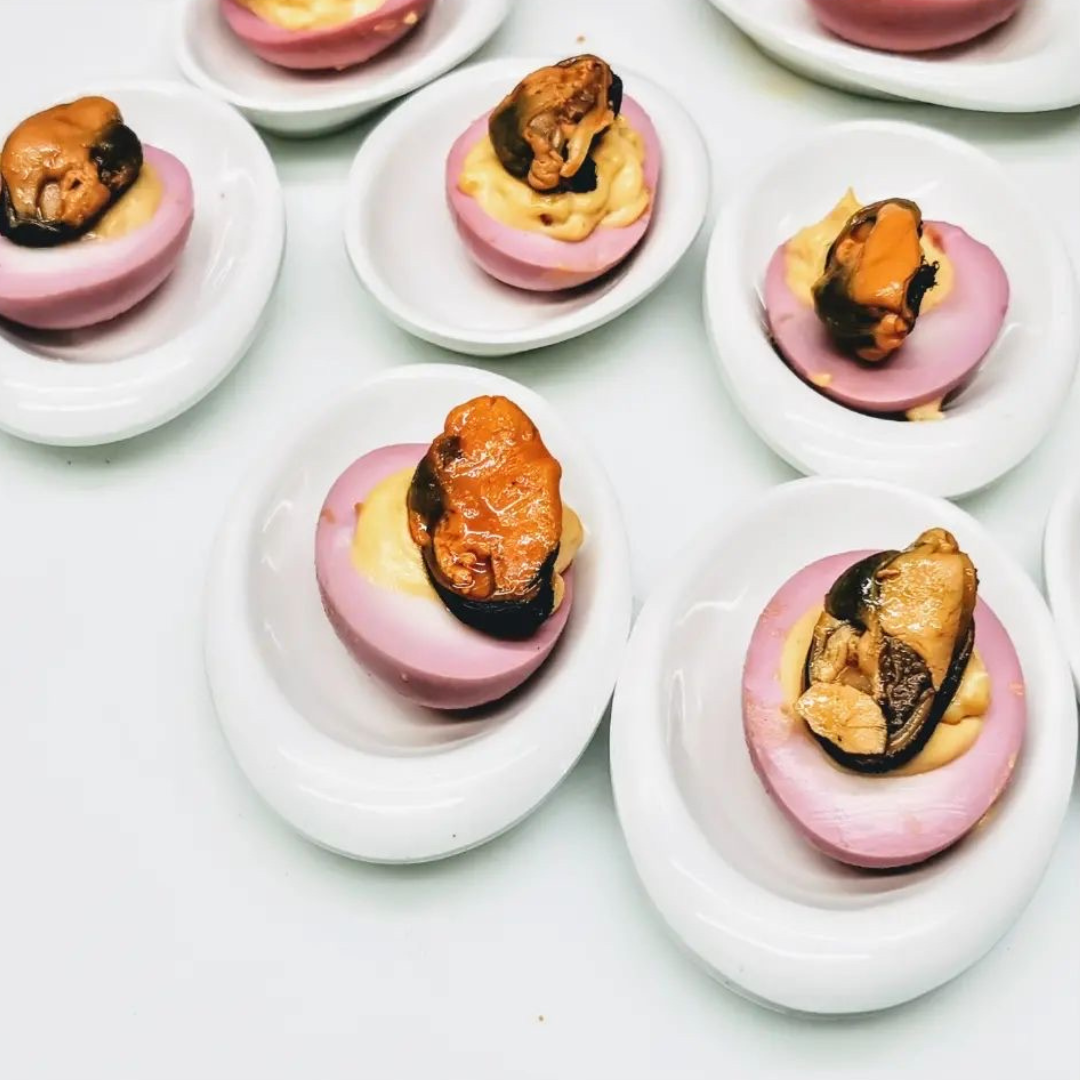 Deviled Eggs with Pickled Mussels