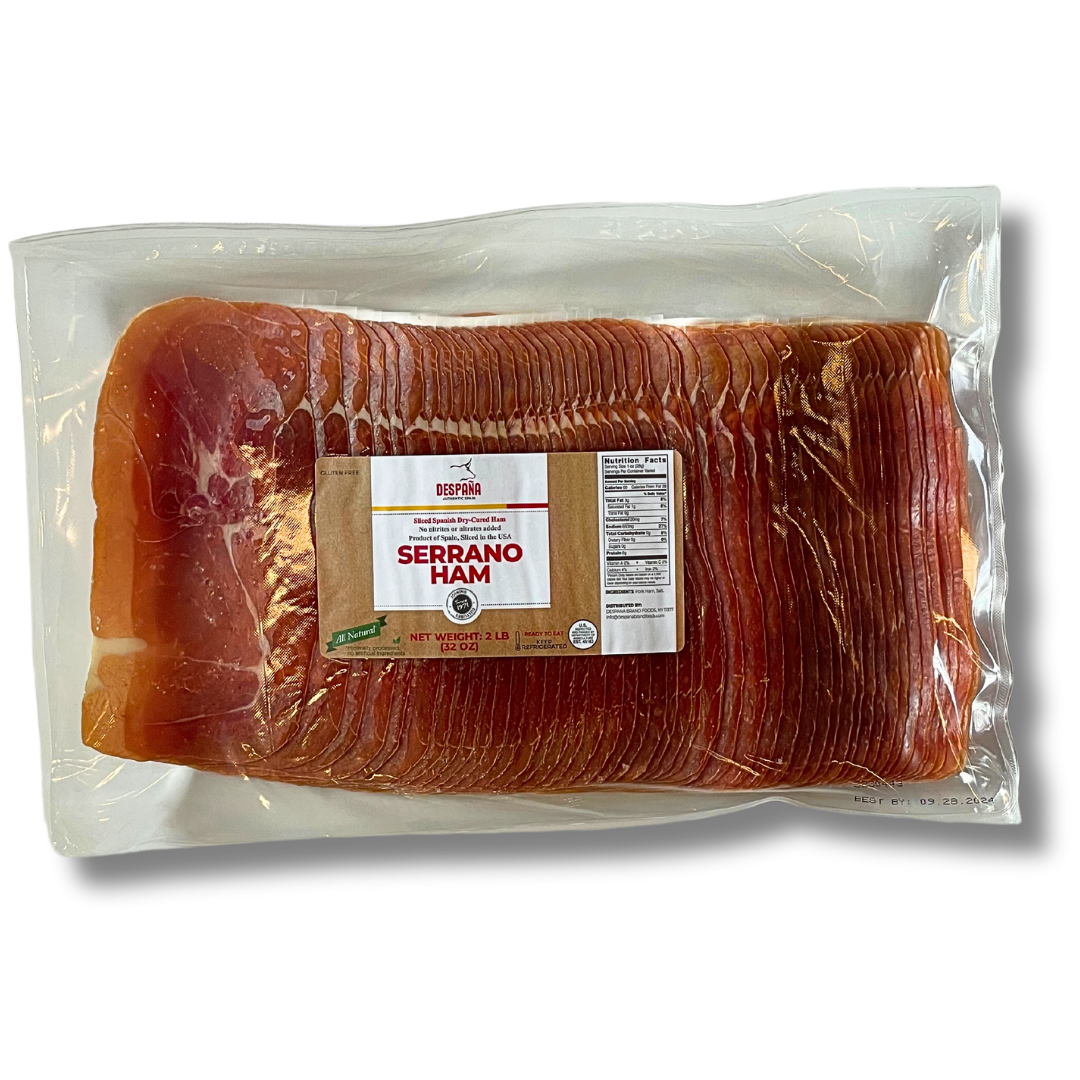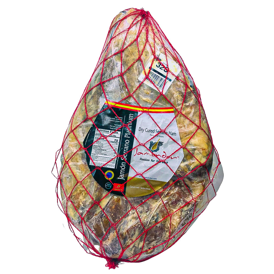 Jamón serrano is the most common cured ham found throughout Spain and part of every day life. Whether you're being served it on a tapa at a bar, or eating from a plate in a family's home, it is an essential. Typically made from crossing a duroc pic, these hams are aged around 18 months to make them a more economical option.