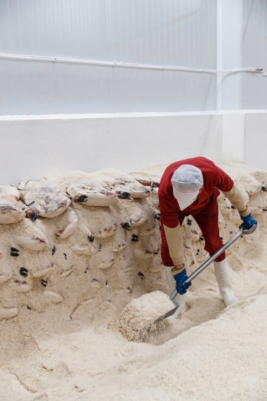 Each ham is hand-rubbed with sea salt and left to rest, allowing the salt to slowly draw out moisture and intensify flavor. This ancient step preserves the meat and lays the foundation for its unmistakable depth.